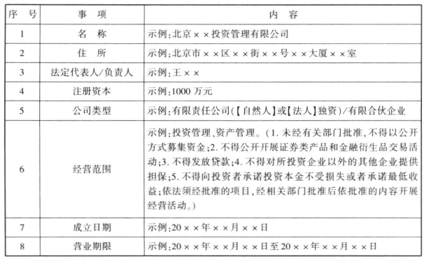 (1)关于经营范围:因私募基金管理人注册地的不同,各地颁发的营业执照中所记载的经营范围可能有所不同。但在私募基金行业监管趋于严格的大背景下,一般市场监管部门颁发的营业执照均对不得开展的业务有明确的限制。
