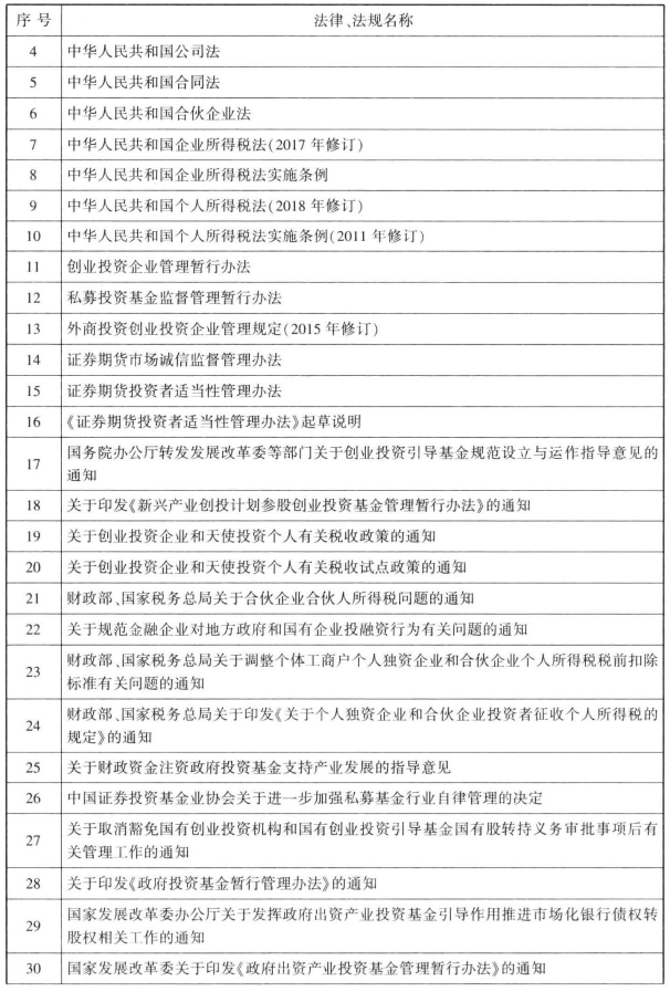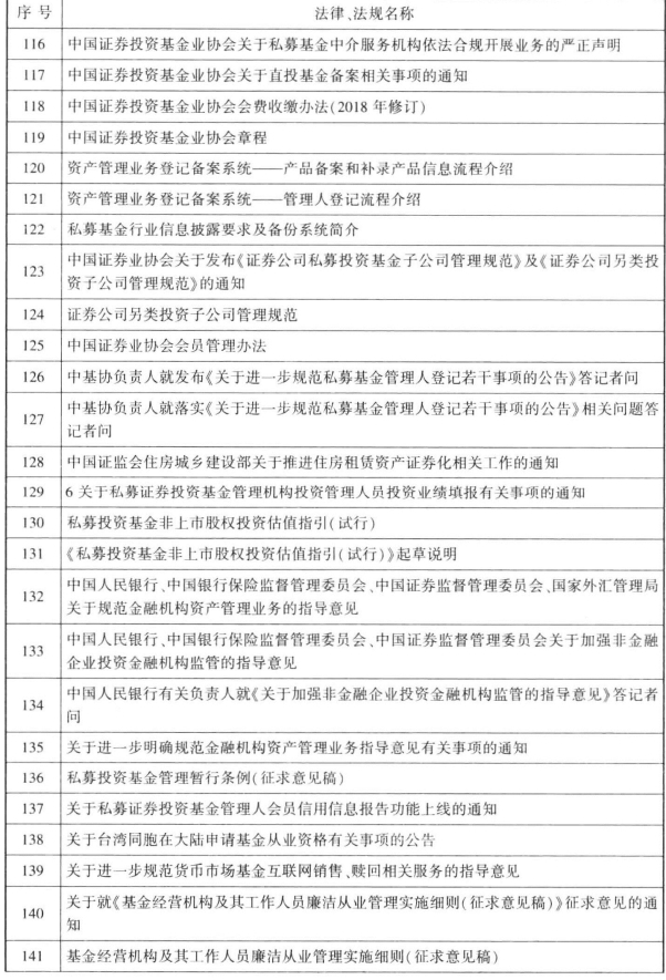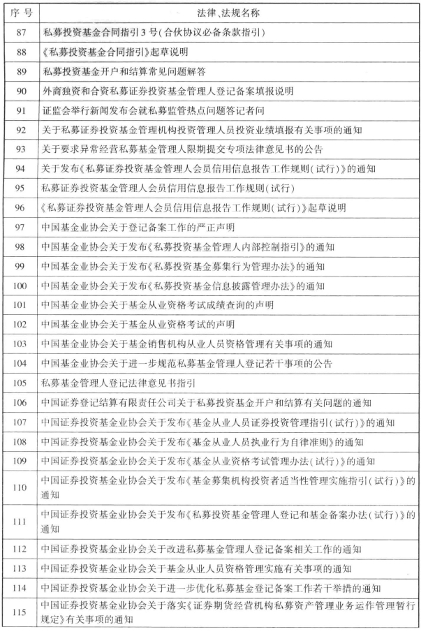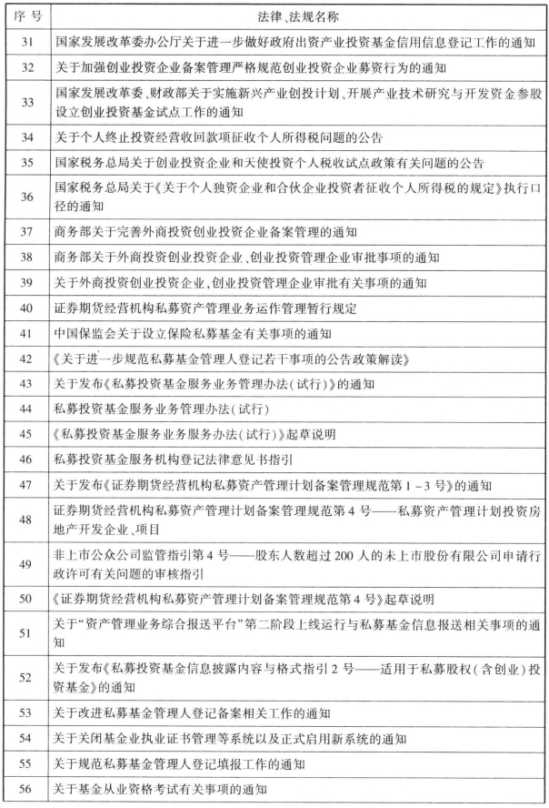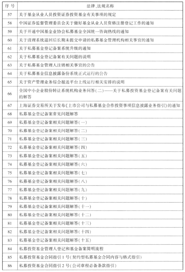 表65-1 私募基金所涉法律、法规及自律规则一览