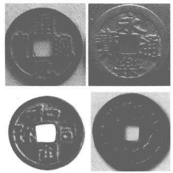 图5-5 开元通宝、永乐通宝、和同开弥、粟特圆形方孔钱