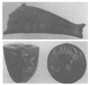 在古罗马,早期人们把铜切割成块状或条状,作为金银的辅币使用,这种称量货币残块被称为“Aus Rude”,意思是未经加工的青铜。