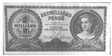此时的匈牙利,经济财政已经处在崩溃边缘。1944年,匈牙利平格最大面值为1000,一年以后这个数字变成了1,000,000,到了1946年,居然变成10的21次方,即1后面有21个0。
