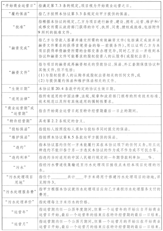本协议示范文本主要用于污水处理特许经营项目,如BOT(建设—运营—移交),TOT(转让经营权)等形式。其他形式如股权转让等可参照本示范文本。
