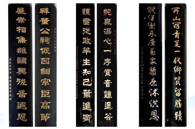 祠堂楹联书法或正楷或狂草,其形式或短对或长对,与祠堂建筑风格一同构成一道文化风景线。