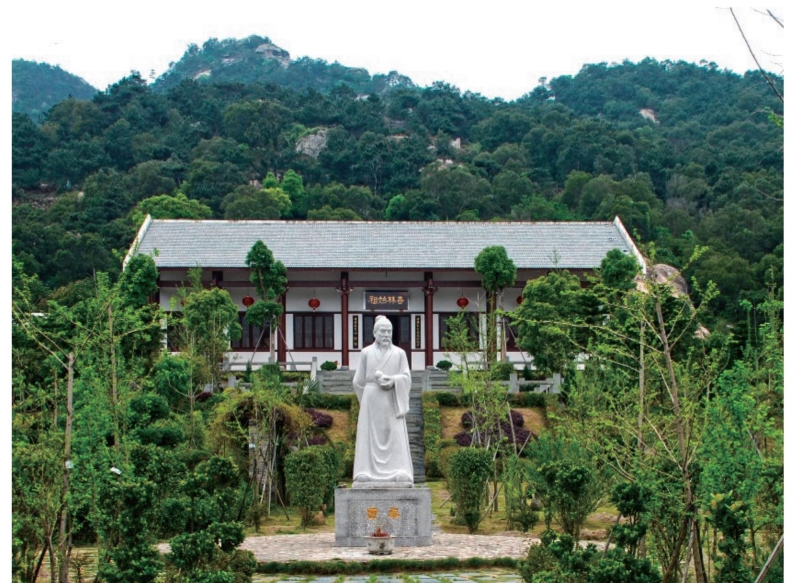 草堂依山而筑,由南雅堂旁登山,便可踏上福山龙道。福山龙道全长2300多米,路旁绿树掩映,四季花开不断。龙道左边是太极广场,占地面积360平方米,高5米的太极炼丹炉挺立着,丹炉前的广场地面还有一个灰黑两色石头拼成的太极图案。这一切似乎都在述说着董奉当年行医修道、炼丹济世的故事。