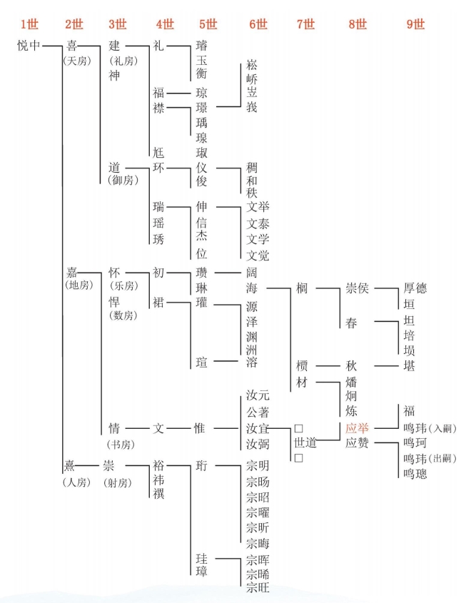 应举,乳名信,字崇相,号见龙,嘉靖三十六年(1557年)生。万历十五年(1587年),即在母亲66岁那年,应举娶长乐岭南陈诩之女为妻,生一女。应举任太常少卿时,天启皇帝曾封诰陈氏为“恭人”,应举曾把弟弟的二儿子鸣玮过继为养子。后续娶刘氏为妾,生子福。其弟应赞娶本乡林迪卿之女为妻,生三男三女。三男依次叫鸣珂、鸣玮、鸣璁。应举在世时有四个小孙子。