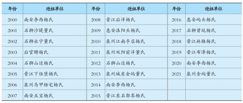 历年迎祖单位名录