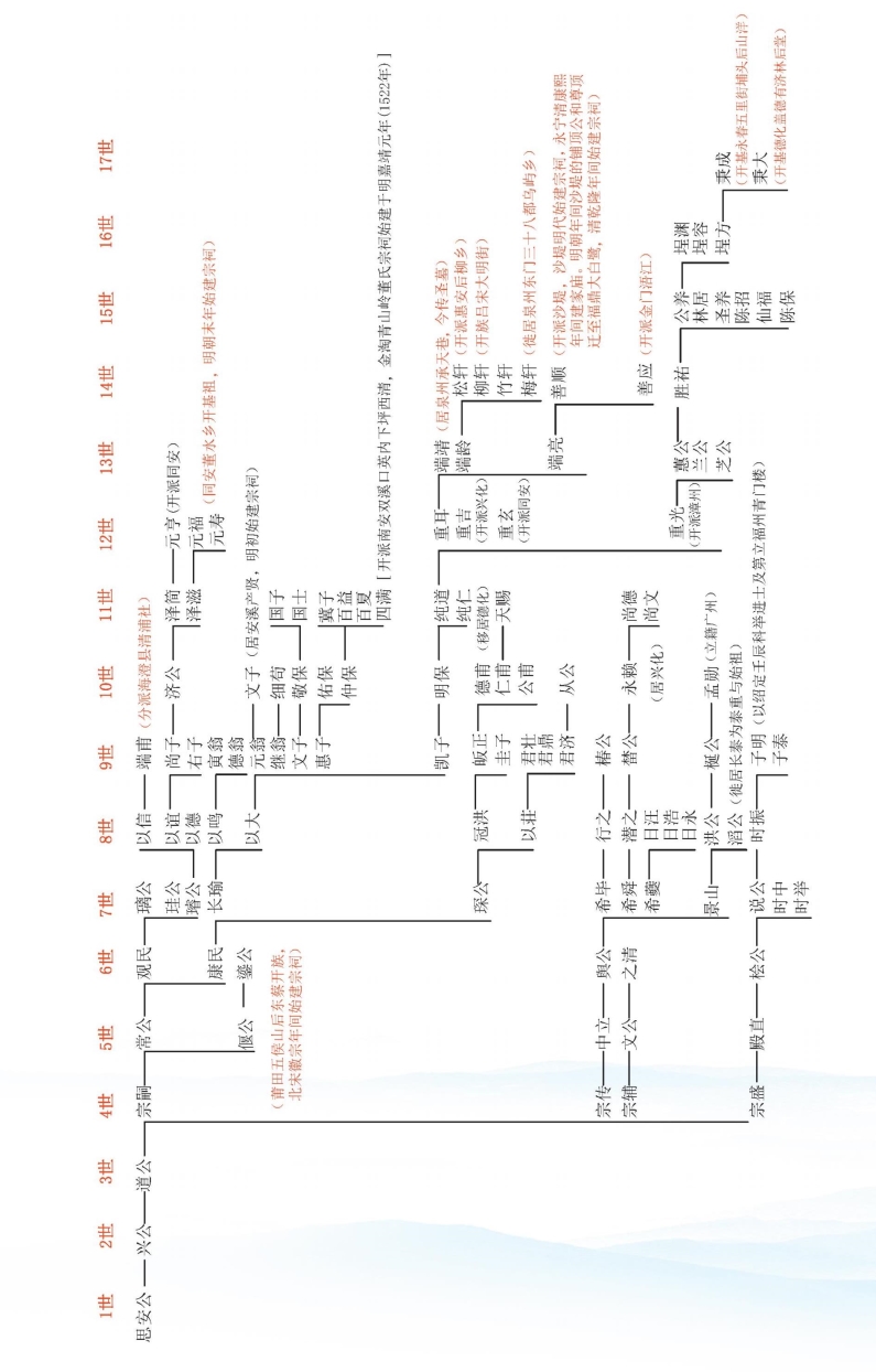 根据沙堤董氏族谱,整理了泉州董氏前代世系简明图,如下: