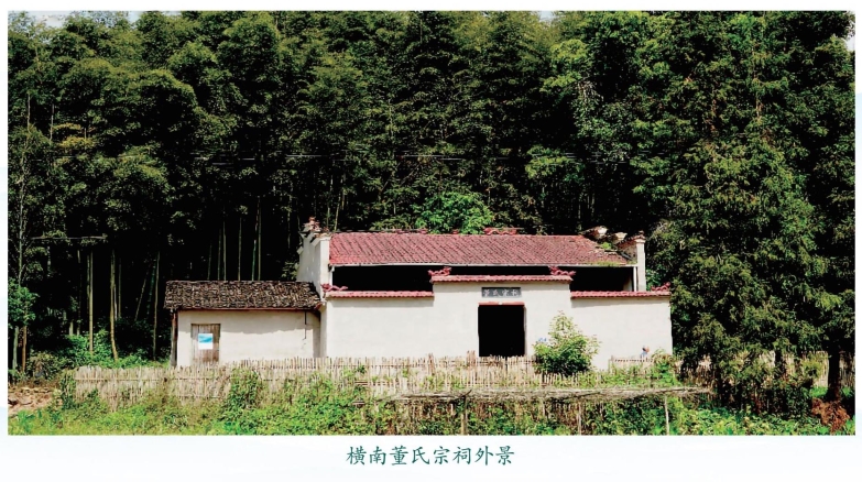 横南董氏宗祠坐落在水口村董家自然村,始建于清嘉庆二十五年(1820年),原宗祠木结构,三进两天井,道光十六年(1836年)稍微重修。同治庚午(1870年)重新集资修建。“文化大革命”中被毁坏。2008年在原址上重建宗祠。现今宗祠为硬山式砖木结构,建筑面积近200平方米,坐西北朝东南。周边翠竹环抱,进了宗祠大门,就是天井,天井连接着由8根木柱组成的三开间敞口明亮大厅,沿着宗祠大门中轴线最后是祖先神座。每年清明节宗族祭祀活动都在大厅进行。