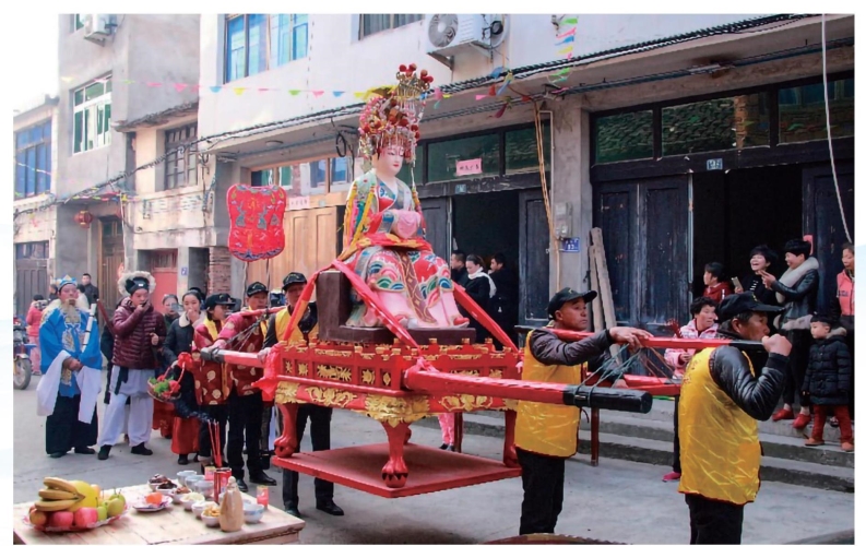 遵循梓俗,鼓乐娱神,普度佑平安。