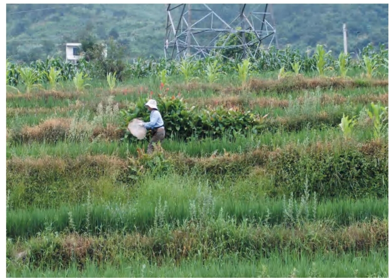 蜾蠃主要捕猎鳞翅目Lepidoptera幼虫,通过蜇刺麻痹猎物,使其失去活动能力,为其幼虫提供新鲜食物。 《诗经·小雅·小苑》有“螟蛉有子,蜾蠃负之”的记述。据估算,每头雌蜾蠃每天可产6~12粒卵,每粒卵需储存6~25头猎物,依此推算每头雌蜾蠃每天因捕猎而使毛毛虫减少达100余头,在多种农林生态环境中对害虫种群数量起到了直接的生物控制作用(图1-13~图1-15);此外,蜾蠃蜂毒具有麻痹猎物并使其在蜾蠃幼虫取食前丧失活动能力的特殊功能,可作为开发新型麻醉剂和生物源农药等的资源。