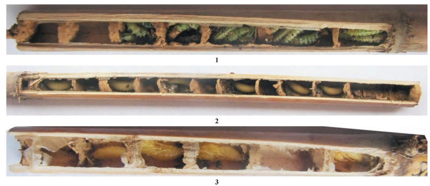图1-9 蜾蠃亚科种类在竹管中的巢室