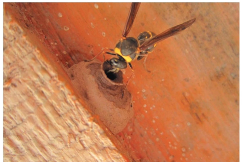 图1-7 直盾蜾蠃属种类Stenodynerus sp.在土墙上筑巢(云南怒江)