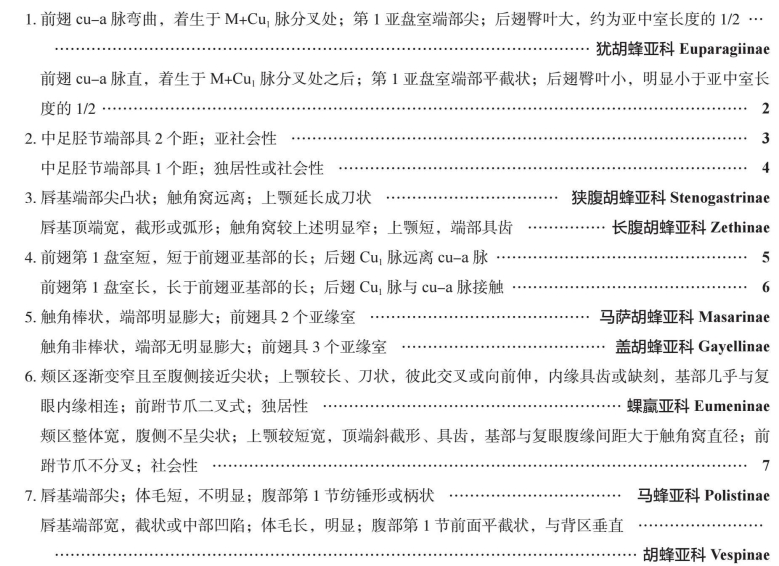 5.腹部第7节(metasomal segment 7) 雄性腹部第7节腹板是否具纵沟可用于区分属,如华丽蜾蠃属Delta和费蜾蠃属Phimenes;腹板端部形状可作为分种特征。