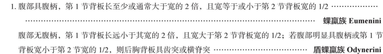 【生物学特性】 独居,平时营自由生活,成虫无固定居住的巢穴,仅在交配后才开始营巢产卵。其巢穴有2种类型:一种是呈中空壶状,上部有细颈,开口于颈端部的巢穴,这类巢穴一般由腹部第1节延长成柄状的蜾蠃衔泥制成;另一种多是开口竹管、芦苇管、泥缝等,这类蜾蠃腹部正常并不延长成柄状,产卵时直接将卵产于竹管或芦苇管等内壁上。