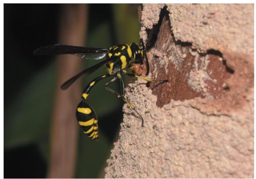 图2-a 弓费蜾蠃Phimenesflavopictus生态图(广州番禺 刘庆明 摄)