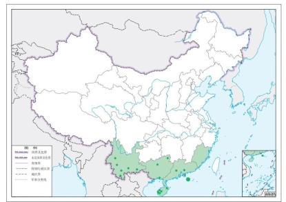【地理分布】 福建、广东(惠州、肇庆)、海南(东方、五指山、乐东、定安、昌江、尖峰岭)、香港、广西(合浦、兴安、河池)、云南(普洱、临沧、保山、红河、文山、西双版纳);越南,老挝,柬埔寨,泰国,印度,缅甸,尼泊尔,不丹,斯里兰卡,马来西亚,印度尼西亚,巴基斯坦,新几内亚岛,美国(夏威夷)。