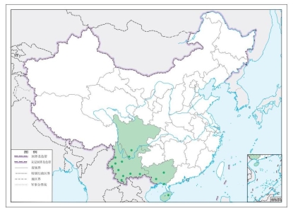 【地理分布】 云南(大理、红河、西双版纳、临沧、保山、德宏、普洱、文山、怒江)、广西(崇左、来宾、北海)、海南(屯昌)、四川(攀枝花、凉山);印度。