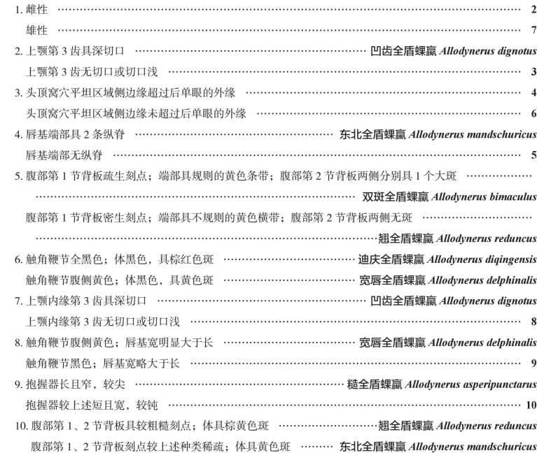 中国全盾蜾蠃属Allodynerus分种检索表