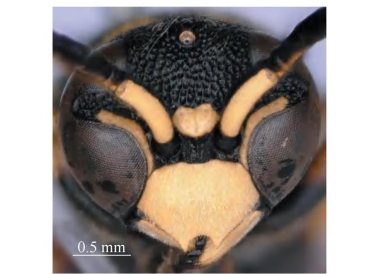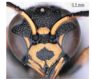 图2-38-3 宽唇全盾蜾蠃Allodynerus delphinalis雄性头部正面观