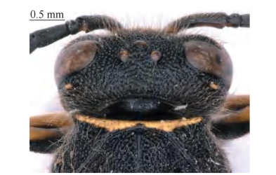 图2-74-3 黑沟蜾蠃指名亚种Ancistrocerus scoticus scoticus雄性头部和前胸背面观