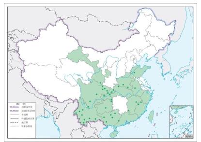 【地理分布】 浙江、安徽(六安)、福建(武夷山、邵武)、江西(抚州、崇义)、山东(泰安)、河南(南阳、信阳)、湖北(武当山)、广东、广西(河池、百色、桂林、岑溪、来宾、崇左)、海南、重庆(巫溪、秀山、开州、酉阳、梁平、石柱、云阳)、四川(广元、眉山、阆中、凉山、巴中、攀枝花、达州)、贵州(黔南)、云南(文山、大理、普洱、临沧、红河、保山、德宏、西双版纳)、甘肃(陇南)、台湾;韩国,泰国,老挝,越南,缅甸,马来西亚,印度。