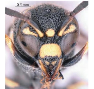 图2-102-2 穴居短触蜾蠃Apodynerus troglodytes雄性头部正面观