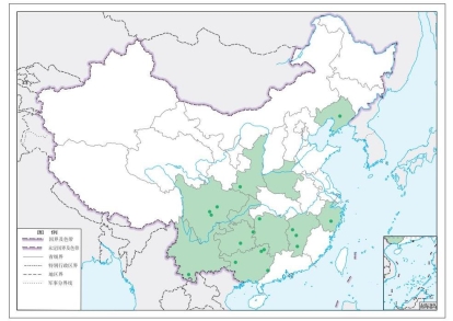 【地理分布】 辽宁(辽阳)、河南、陕西(汉中)、浙江(丽水)、江西(宜春、赣州、吉安)、湖南(张家界)、广西(桂林、百色、兴安、岑溪)、重庆、四川(雅安、峨眉山、成都)、贵州(黔南、铜仁)、云南(西双版纳);印度,尼泊尔,老挝,蒙古,韩国,日本。