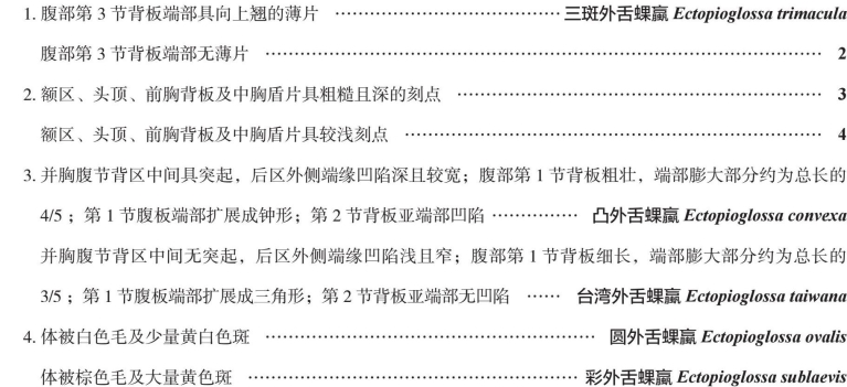 中国外舌蜾蠃属Ectopioglossa分种检索表