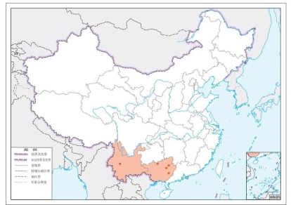 【地理分布】 广西(阳朔、容县、环江、金秀)、云南(云县)。