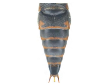 【形态特征】 体黑色,具大量黄棕色斑,其中唇基纯黄色,腹部第1节至末节端部均具1条黄色条带。唇基宽略小于长,具中等密度刻点,刻点间距等于或略大于刻点直径,端部略凹陷、两侧略长齿状。腹部第2节端缘具明显薄片,端部刻点明显较其他区域密集;第1、2节背板刻点明显较胸部的刻点小且稀疏;第2节腹板中等凸起,基部具明显中纵沟;雄性生殖器阳茎端部圆形,抱握器端部略平截。