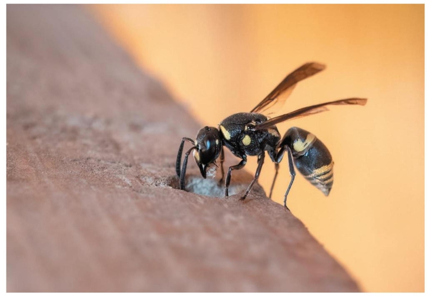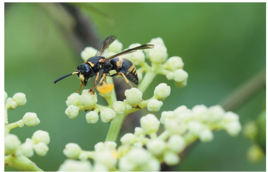 图2-128-1-d 日本佳盾蜾蠃指名亚种Euodynerus (Pareuodynerus) nipanicus nipanicus雌性生态图(浙江温州 何既白 摄)