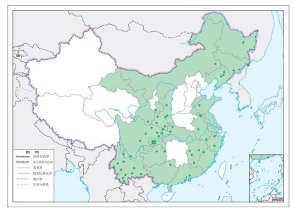 图2-128-2-b 日本佳盾蜾蠃东京亚种Euodynerus(Pareuodynerus) nipanicus tonkinensis地理分布图