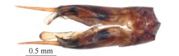 图2-130-4 四带佳盾蜾蠃指名亚种Euodynerus (Pareuodynerus)quadrifasciatus quadrifasciatus雄性外生殖器正面观