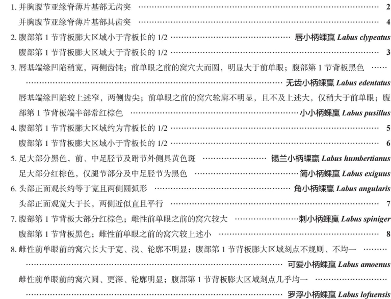【形态特征】 体较纤细。雌性前单眼前具窝穴。前胸脊背面观常不完整;前翅第2亚缘室基部呈钝角;翅基片后缘未超过旁翅基片后缘;后胸背板中部横向凸起呈齿状;并胸腹节亚缘脊薄片和腹瓣常发达。腹部第1节呈长柄状,侧面观端部突然膨大;第2节背板及腹板端部常具半透明薄片。