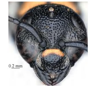 图2-144-3 唇小柄蜾蠃Labus clypeatus雌性头部背面观