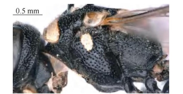 图2-157-4 粗刻短小蜾蠃Leptochilus (Lionotulus) locuples雌性颊区及胸部的侧面观
