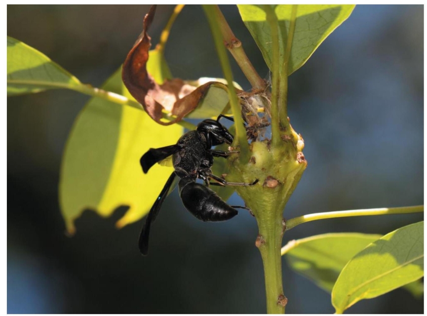 图2-176-1-f 墨体胸蜾蠃指名亚种Orancistrocerus aterrimus aterrimus生态图(广东深圳 陈华燕 摄)