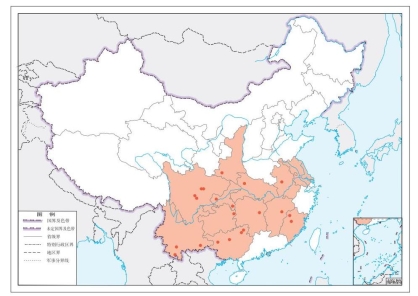 图2-176-2-c 墨体胸蜾蠃端棕亚种Orancistrocerus aterrimuskhasianus地理分布图