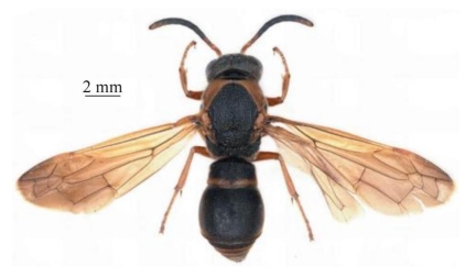 图2-176-2-a 墨体胸蜾蠃端棕亚种Orancistrocerus aterrimuskhasianus雄性背面观