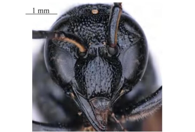图2-176-2-b 墨体胸蜾蠃端棕亚种Orancistrocerus aterrimuskhasianus雄性头部正面观