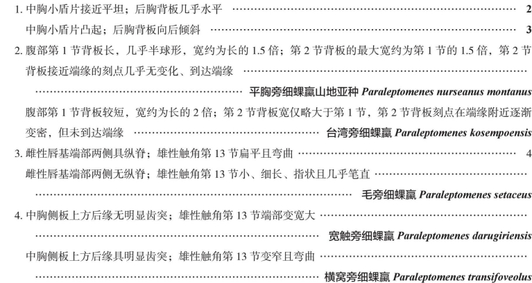 中国旁细蜾蠃属Paraleptomenes分种检索表