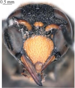 图2-197-2 凹旁喙蜾蠃Pararrhynchium foveolatum雌性头部正面观