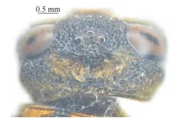 图2-197-3 凹旁喙蜾蠃Pararrhynchium foveolatum雌性头部背面观