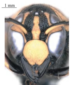 图2-220-2 四刺饰蜾蠃指名亚种Pseumenes depressus depressus雌性头部正面观