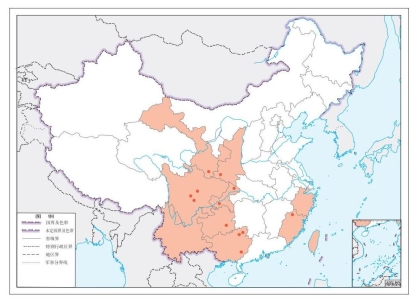 【地理分布】 陕西(汉中)、甘肃(陇南)、浙江、四川(雅安、峨眉山、崇州)、重庆(南川、巫溪)、贵州(凯里)、云南、福建(武夷山)、广西(玉林、桂林、兴安)、台湾。