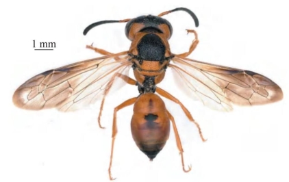 图2-222-1 颚长须蜾蠃Pterocheilus (Pterocheilus) mandibu laris雌性背面观