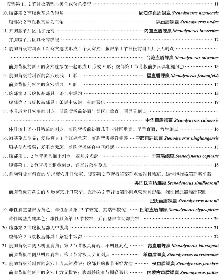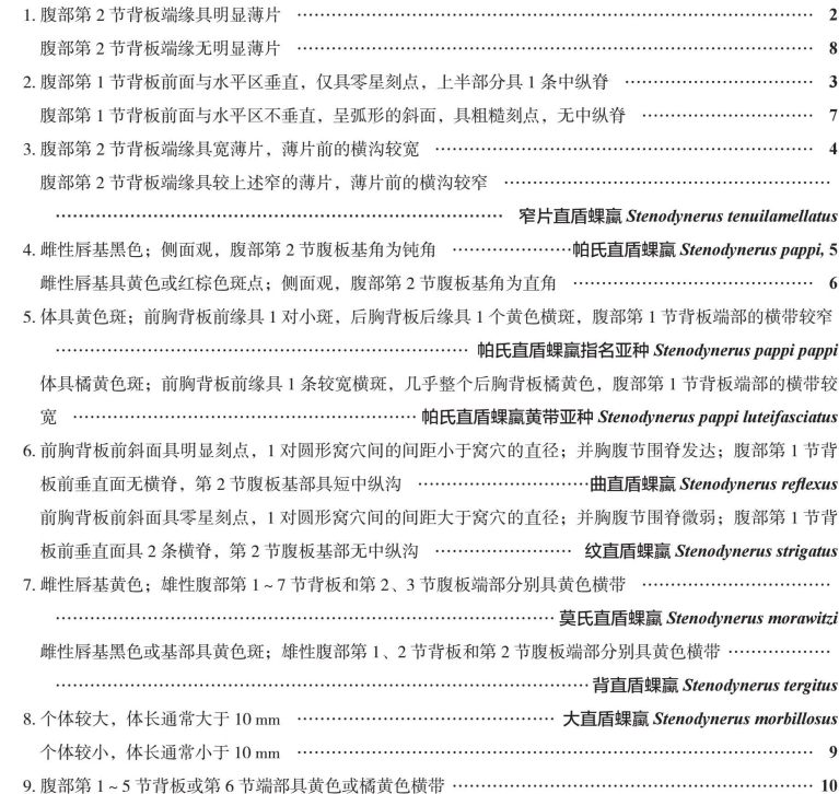 中国直盾蜾蠃属Stenodynerus分种检索表