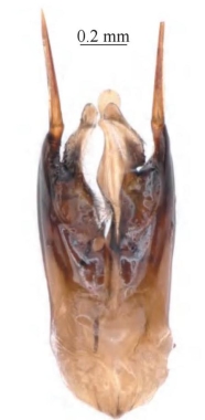 【测量】 雌性体长8.0~8.6 mm,前翅长7.8~8.0mm;雄性体长7.5~8.0mm,前翅长7.0~7.7 mm。