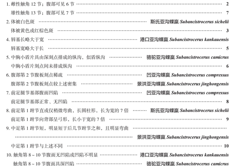 中国亚沟蜾蠃属Subancistrocerus分种检索表
