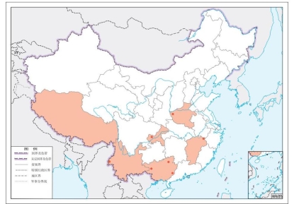 【地理分布】 河南(卢氏)、江西(新岗山)、广西(百色、岑溪、桂林)、重庆(北碚)、云南(铜壁关)、西藏。